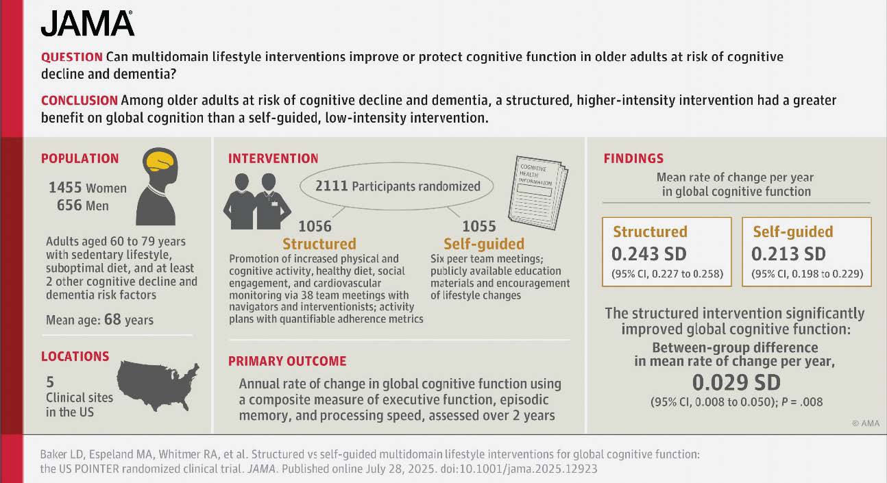 U.S. POINTER study found that targeting risk factors—like regular physical activity, a brain-healthy diet, cognitive and social engagement, and health monitoring—can improve brain function. That’s really good news. Cognitive decline isn’t inevitable with age. We can take action now to protect our brain health.