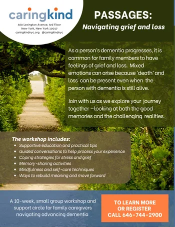 Passages is a 10-week, small group workshop and support circle for family caregivers navigating advancing dementia.